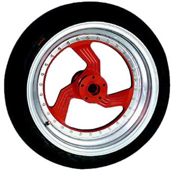 Hjulen består av 3 delar. Höger, vänster och nav, kan fås till 12" brett.. 15" Standard storlek: 15x4,5" 16" Standard storlek: 16x3,5" 17" Standard storlek: 17x3,5" 18" Standard storlek: 18x3,5" Navet och ekrar i ett stycke aluminium AA77022. Fälgens färg anodiserad silver. För mittdelen välj mellan anodiserad röd, blå, svart or natur (grå). Polerat Disc hjul 15-16-17 tum