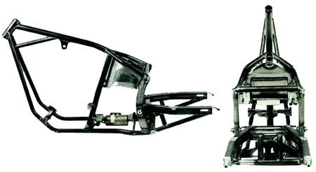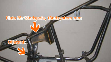 De nya ramarna finns i 35 mm rör rakt igenom, eller med originalrör (28/25 mm). På de nya ramarna har oljetanken flyttats in i swingen, vilket lämnar utrymme för tändspole, tändsystem o elsystem i den gamla oljeburken. Alla fästen är täckta med täckplåt. Se detaljer på bilderna nedan.