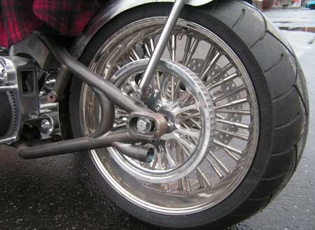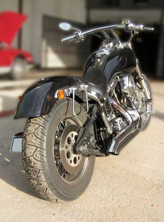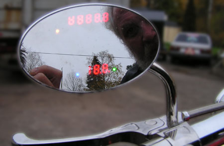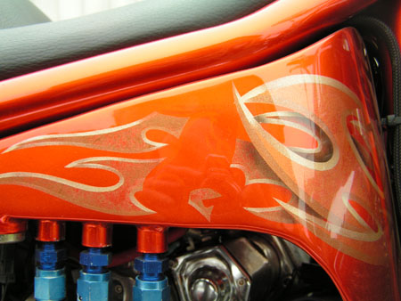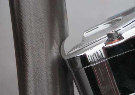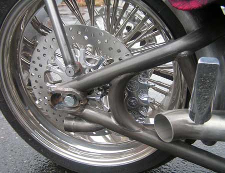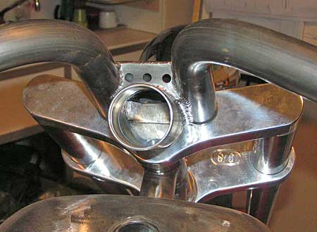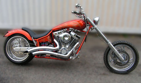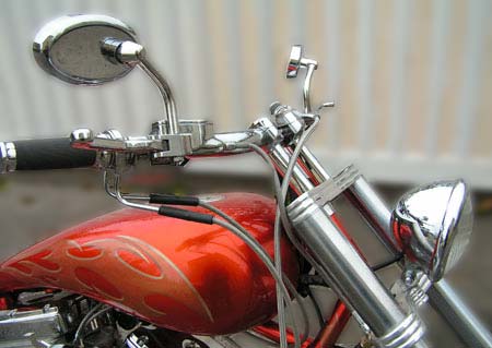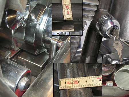 Fr v: oljetank längst ner, tunnare rör 35mm, tjockare 50mm, tändlås inbyggt i ramen, hållare för bromsledning finns förberedd